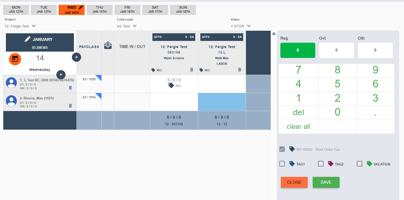If the work order "available on timecards" but is not associated with one or more cost codes, then when a cost code is selected on the time card, the work order can be selected just like a normal tag.