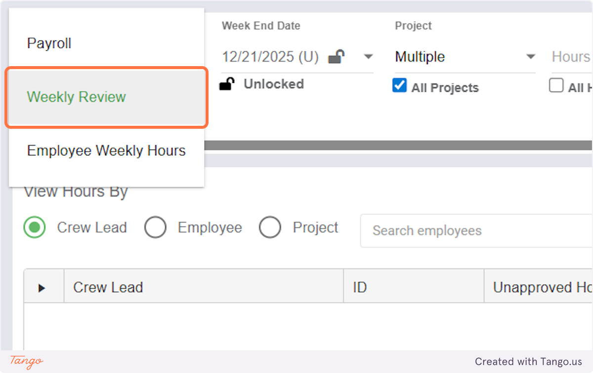 Step 5: Click on Weekly Review to access the bulk review screen.