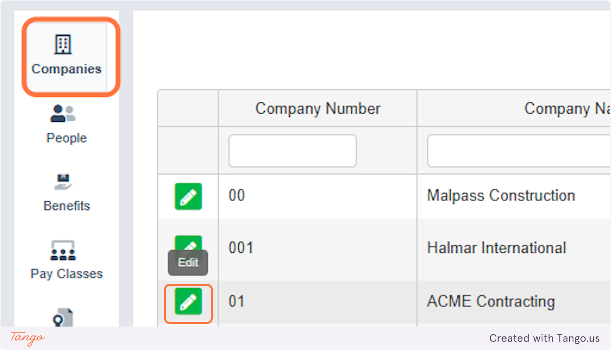 2. Click on Companies and Edit